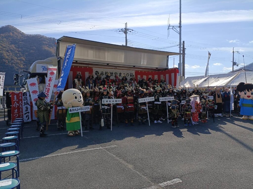 赤穂郡上郡町で昨年まで別々に開催されてきた「白旗城まつり」と「圭介まつり」を統合・継承して「赤松歴史まつり」として開催されました。手作りよろいかぶとを装着した武者たちが勢ぞろいするステージとして弊社車両を使っていただきました。大変喜んでいただきました。